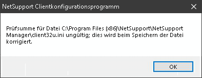 Alternativ kann die Prüfsumme aber auch durch das NetSupport Clientkonfigurationsprogramm nachträglich korrigiert werden.