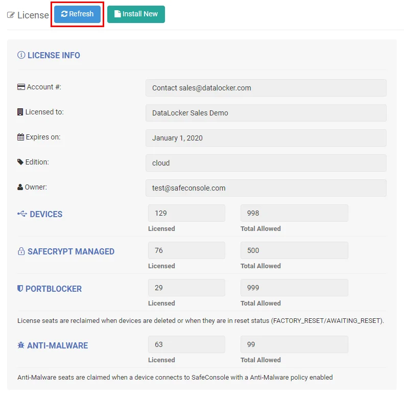 DataLocker-SafeConsole Lizenz aktualisieren