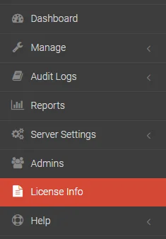 - Starten Sie die DataLocker SafeConsole und rufen Sie die Lizenzseite auf, indem Sie auf der linken Seite des Menüs auf License Info klicken.