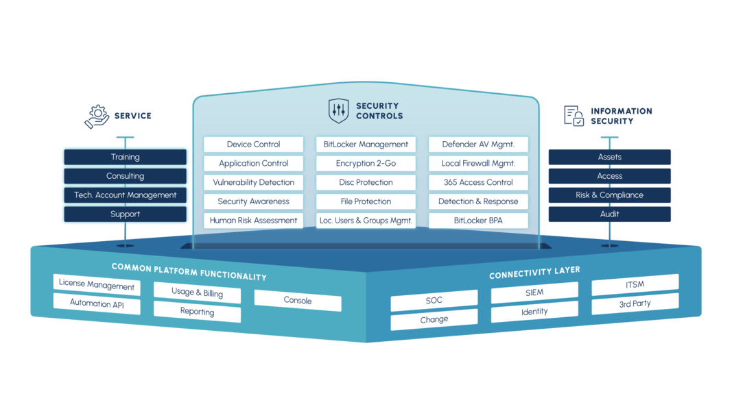 Unser Partner DriveLock versteht sich, als führender deutscher IT-Security Anbieter und sorgt für zuverlässige Sicherheit auf Ihren Endgeräten. Der mehrschichtige Sicherheitsansatz des deutschen Herstellers deckt Speicherlaufwerke, Endgeräte, Applikationen sowie Daten ab, verschlüsselt (mobile) Endgeräte und integriert situationsbedingte Sicherheitsunterweisungen in die Lösung. Die Module können on-premise, als gemanagte Lösung und als Cloud-Dienst eingesetzt werden und sind ein wichtiger Bestandteil einer Zero Trust Strategie. Der Hersteller ist international vielfach ausgezeichnet worden und ist u. a. ISO-27001 zertifiziert und hat das Siegel »SecurITy – Made in Germany«.