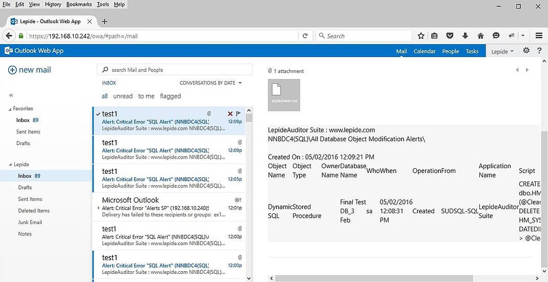 Lepide Auditor für SQL-Server liefert dedizierte SQL-Alarme und berücksichtigt dabei auch die genutzte Hardware, um korrelierte Zusammenhänge zu erkennen. Die Echtzeit-Benachrichtigungen werden, je nach Konfiguration in der Konsole oder in der App angezeigt und als E-Mail gesandt.