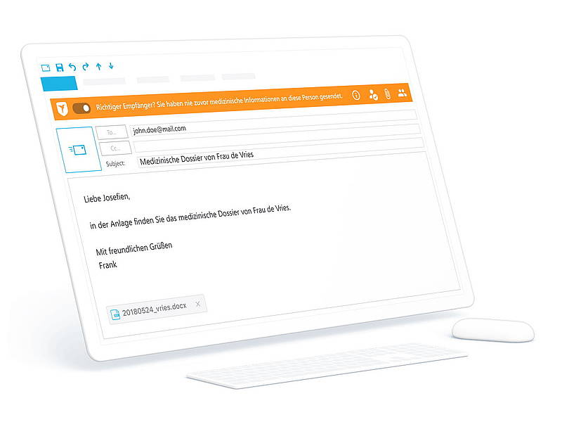 Wichtig dabei: Der sichere Datentransfer erfolgt direkt aus der bekannten E-Mail Umgebung. Workarounds über Messenger oder kostenloser Cloud-Dateitransfer-Dienste sind überflüssig.